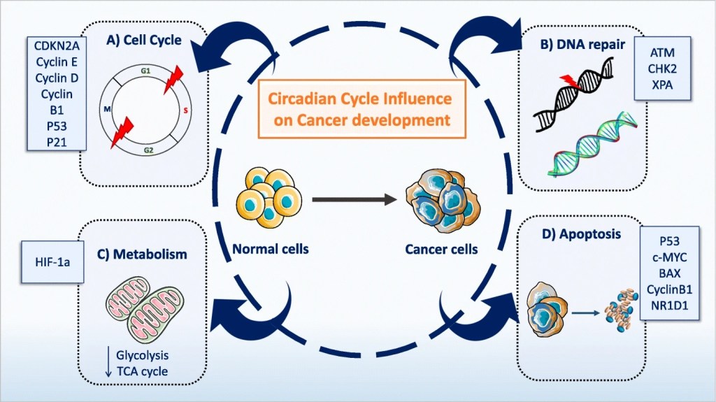 We then discuss the possible clinical implications of the effect of biological cycles on cancer progression, and how they could be exploited to improve and standardize methods used in the liquid biopsy field.