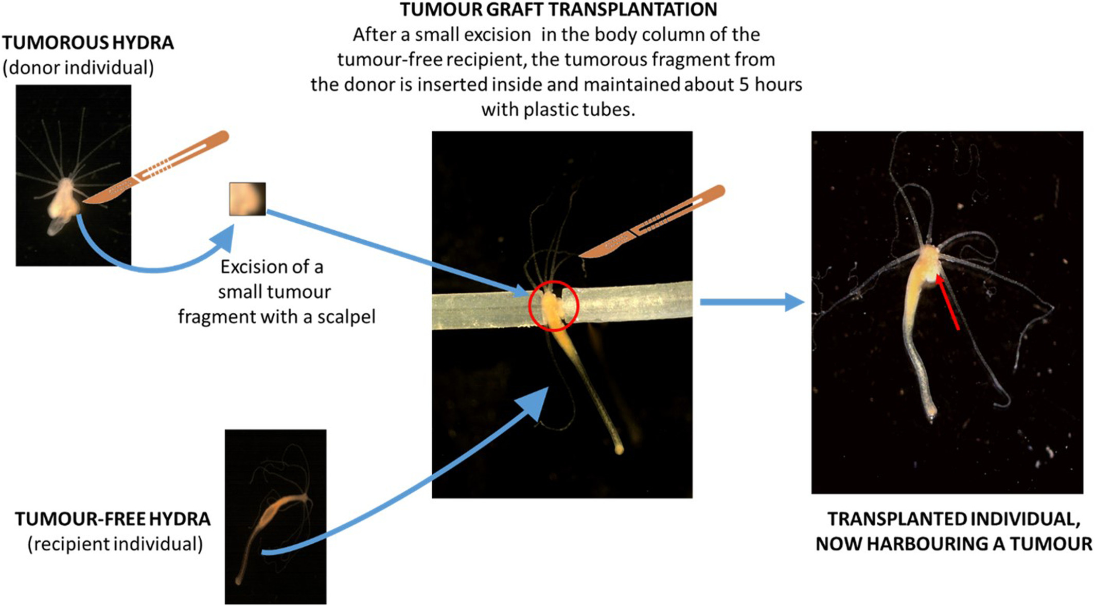 In this review we examine how tumours can be induced in invertebrates to use them as experimental models to study the effects of cancer on the ecology and evolution of species. We identified four main groups of invertebrates (planarian, bivalves, hydra and drosophila) in which such inductions are performed. We then reviewed the types and effectiveness of the methods employed to induce tumours in those groups.