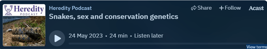 Listen to Prof Thomas Madsen (Deakin University) explaining how a long-term study of an adder population has provided evidence that polyandry and non-random fertilisation can have positive effects on genetic diversity. Thomas argues that factoring in mating dynamics could help to improve conservation genetic analyses.