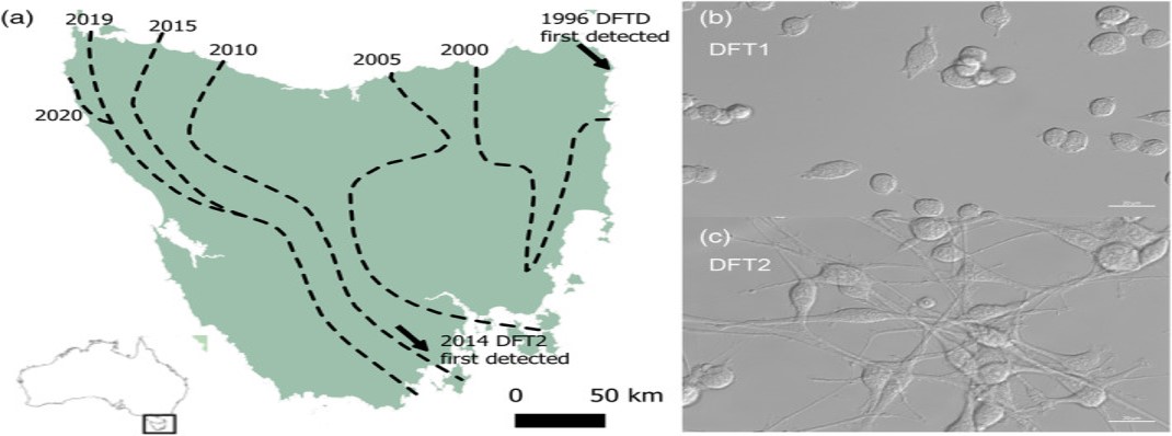 Since the emergence of a transmissible cancer, devil facial tumour disease (DFT1), in the 1980s, wild Tasmanian devil populations have been in decline. In 2016, a second, independently evolved transmissible cancer (DFT2) was discovered raising concerns for survival of the host species.