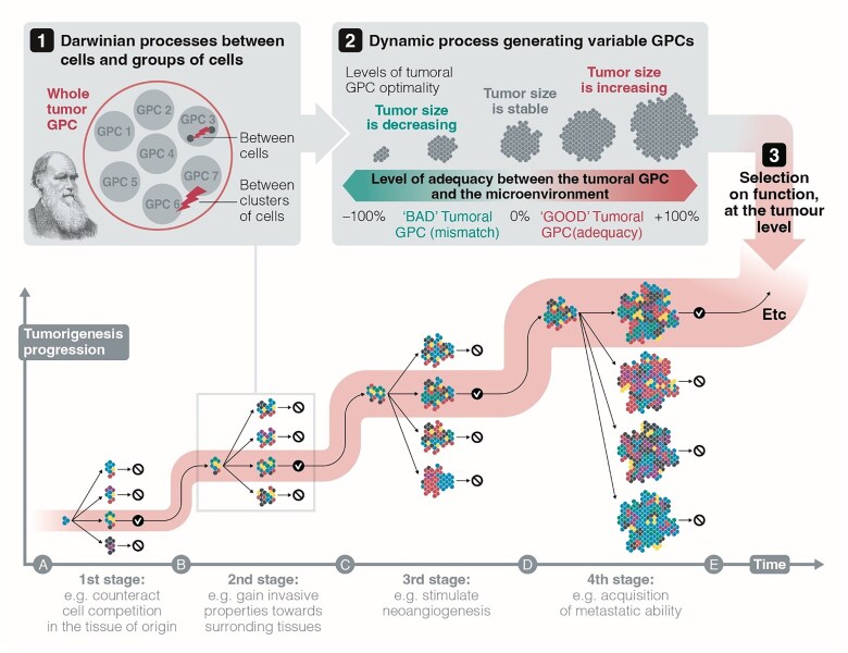 Current cancer therapies often fail due to tumor heterogeneity and rapid resistance evolution. A new evolutionary framework, ‘selection for function,’ proposes that tumor progression is driven by group phenotypic composition (GPC) and its interaction with the microenvironment, not by individual cell traits.